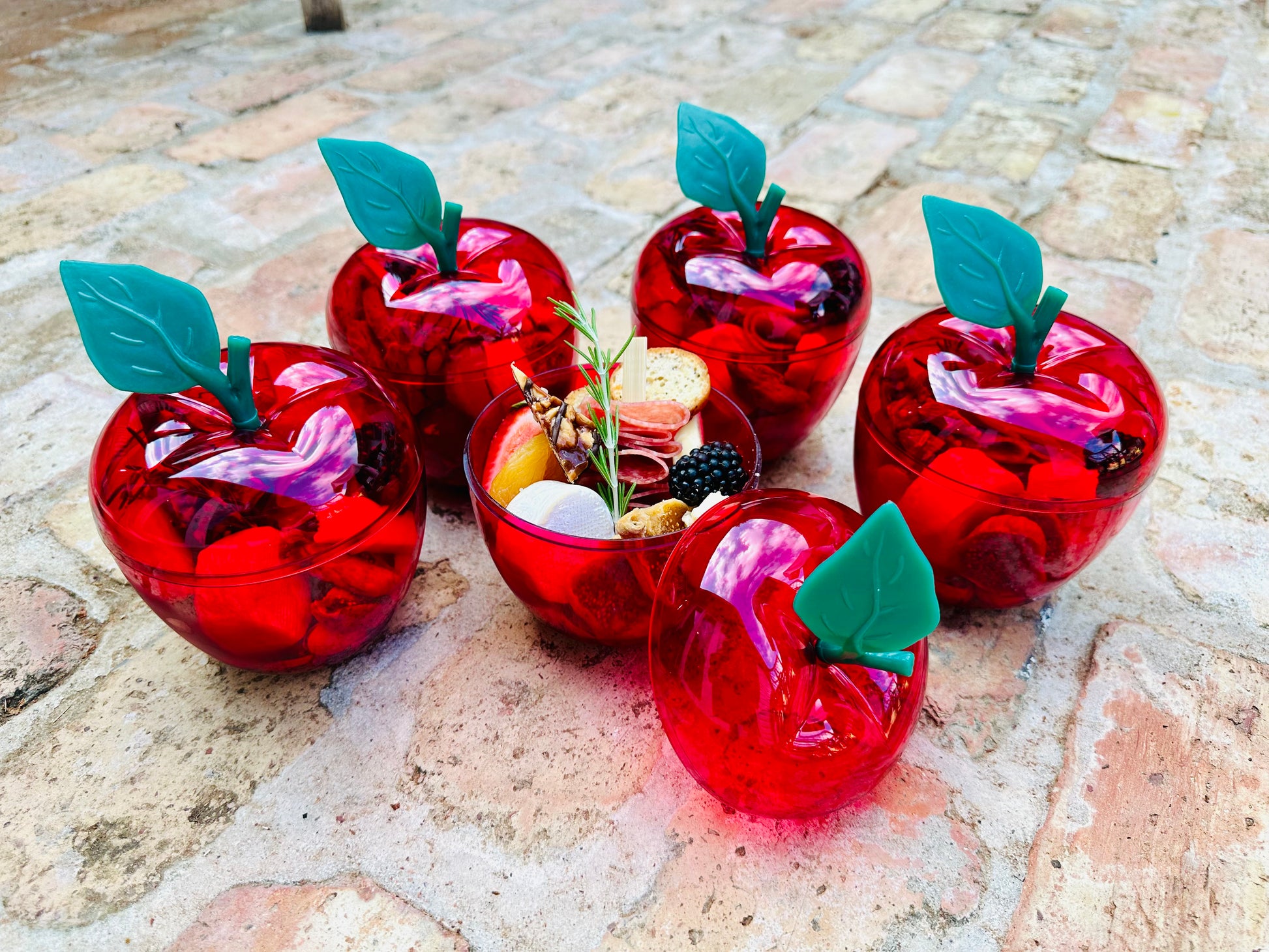 Our signature Applecuterie is a fresh take on snacking—served in a charming plastic apple and filled with mini bites of cheese, meats, fruits, nuts, and a touch of sweetness.